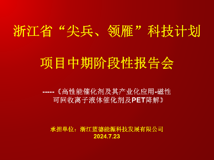 Zhejiang LDET Energy Technology Development Co., Ltd. provedla výzkumné a vývojové práce „Vanguard“ a „Leader“ hlavní vědecké a technologické projekty provincie Zhejiang - magnetické recyklovatelné iontové kapalné katalyzátory a degradace domácího mazlíčka “. Tým pro výzkum a vývoj projektu LDET úspěšně vyvinul první generaci technologie přípravy na přípravu iontového kapalinového katalyzátoru založeného na kobaltu „Three-in-One“, dosáhl efektivní fermentace domácích zvířat a získal monomery s vysokou čistotou BHET. Pilotní experiment byl dokončen a dosaženo dobrých výsledků. Porovnáním pokroku dosaženého v drobném experimentu s veřejnými údaji nizozemské společnosti Ornica dosáhly výsledků v zásadě na mezinárodní pokročilé úrovni. Naše samostatně vyvinuté iontové kapalinové katalyzátory nanovo na bázi nanokových prozkoumaly světově vedoucí inovativní cestu pro efektivní recyklaci PET v uzavřené smyčce chemickými metodami k získání „vysoce čistých a špičkových chemikálií BHET“. .